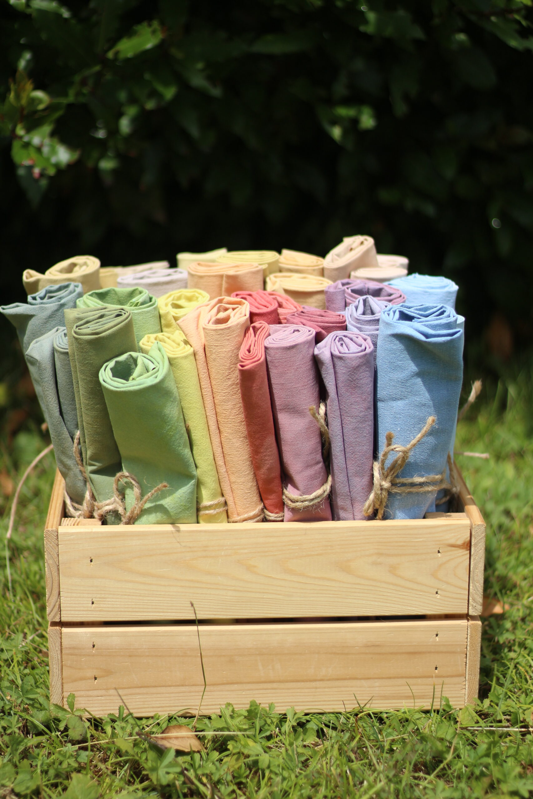 La teinture végétale s’invite sur vos créations vous grâce aux coupons de tissus colorés à la teinture végétale !