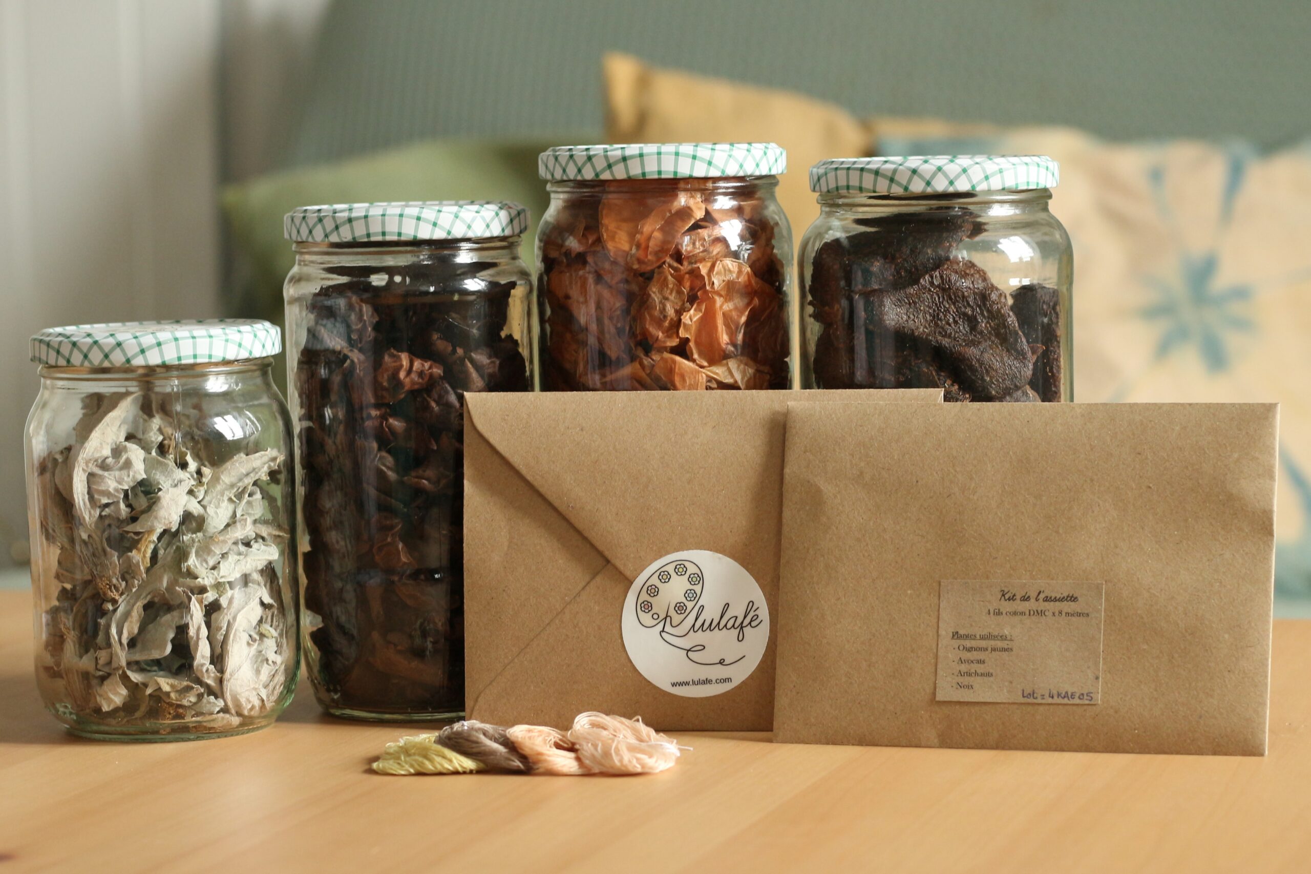La teinture végétale s’invite sur vos broderies vous grâce au pack de fils de broderie Assiette colorés à la teinture végétale… uniquement avec des déchets alimentaires !
